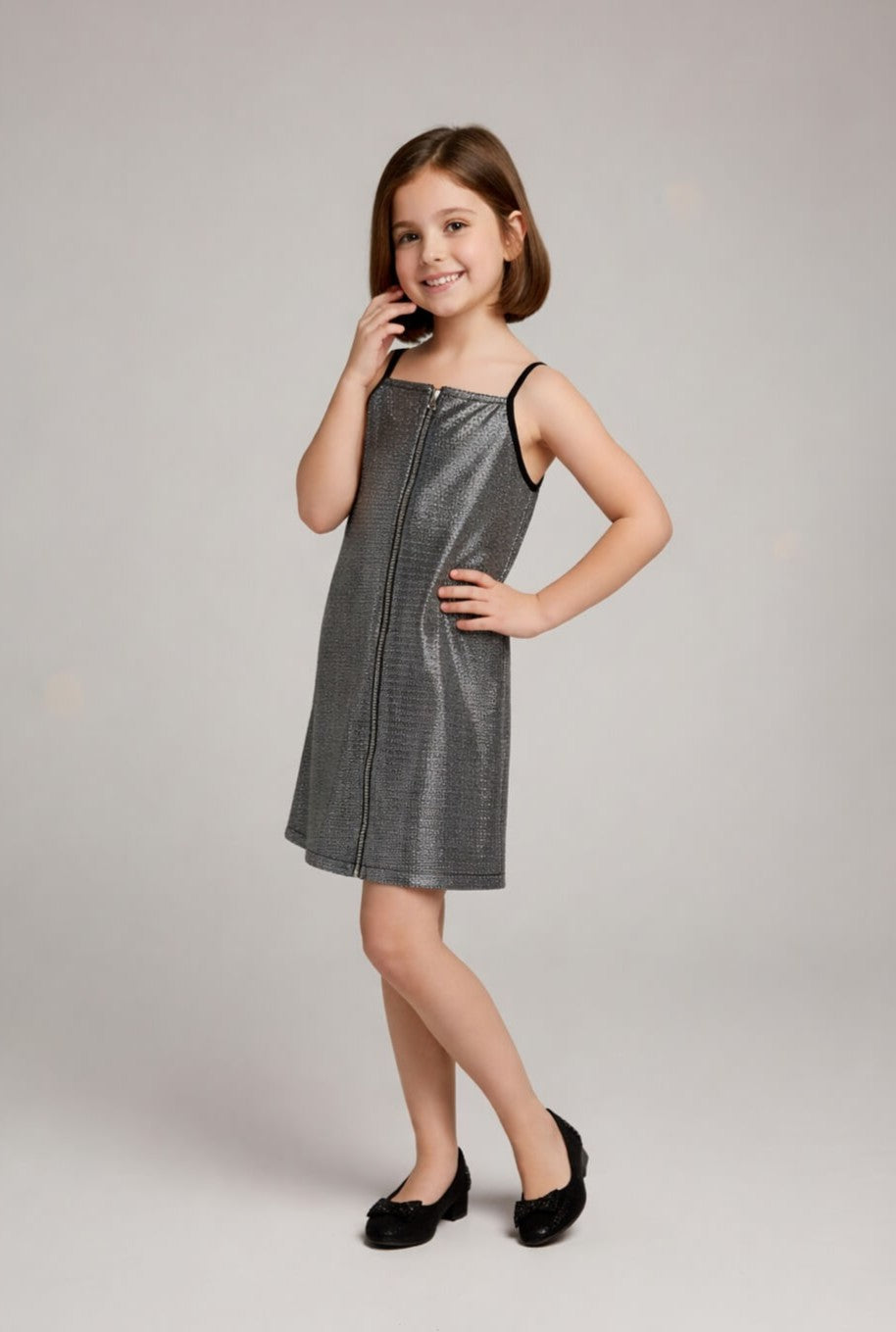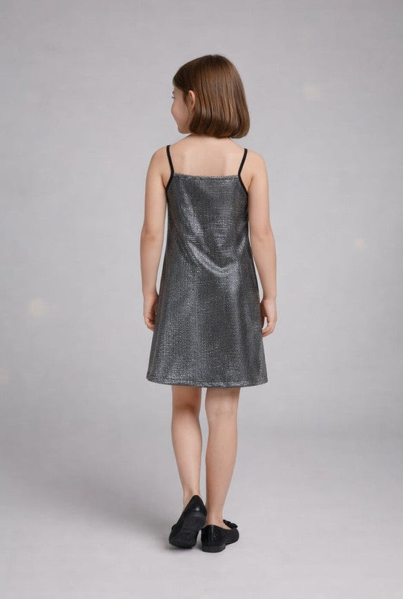 Metallic front zipper singlet party dress- Silver & Black