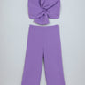 Woven Sleeveless Solid Bow detail crop top and pant set-purple