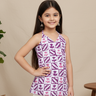 100% cotton sleeveless abstract checks printed back tie up top- Purple