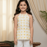 100% cotton woven sleeveless abstract printed halter neck Top-Yellow