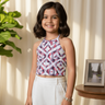 Cotton striped textured batik printed halter neck shaped hem back tie up ethnic crop top