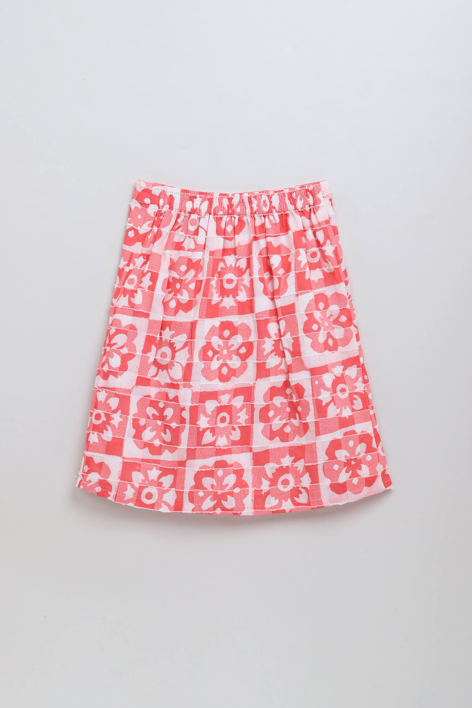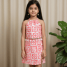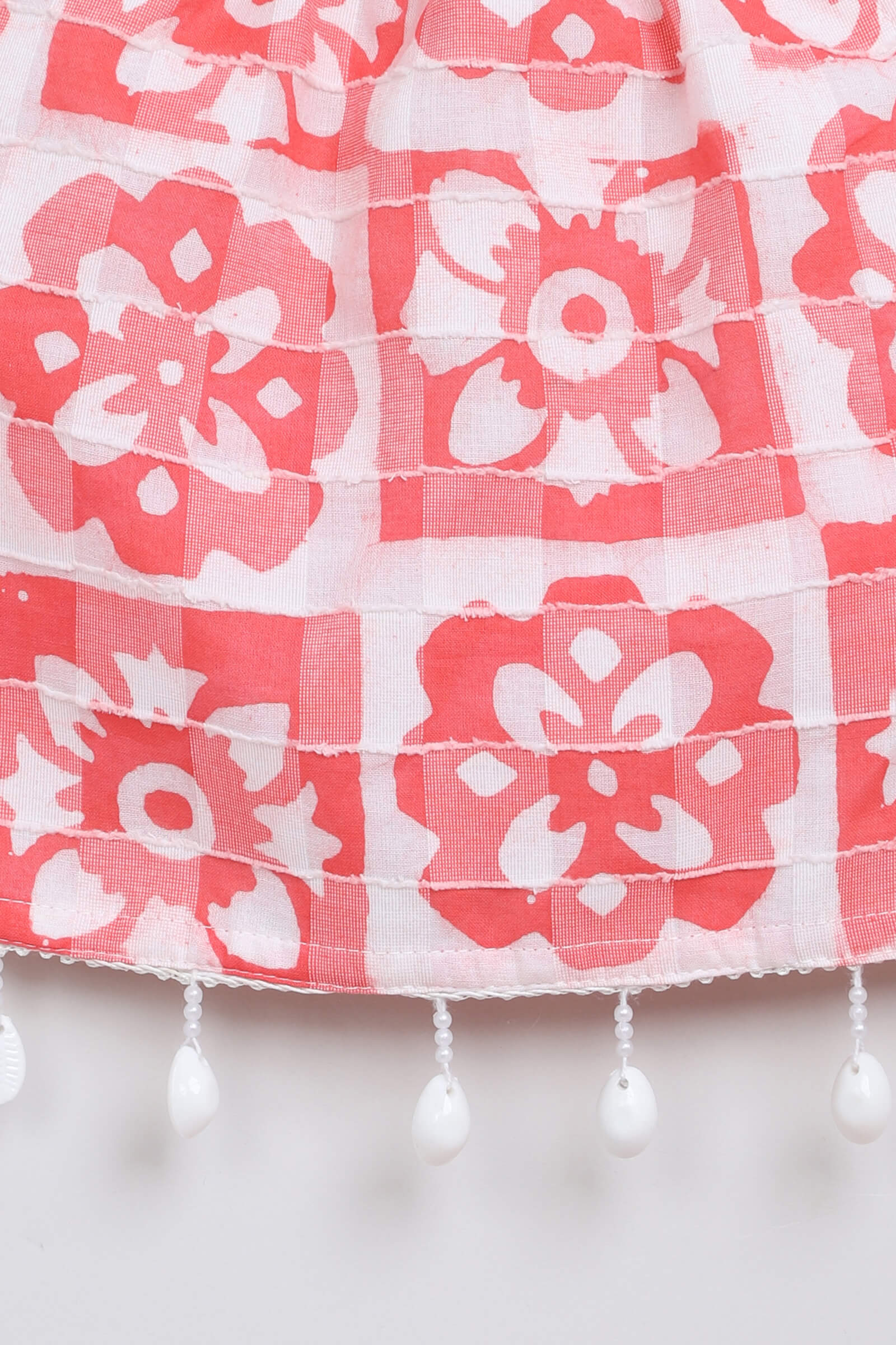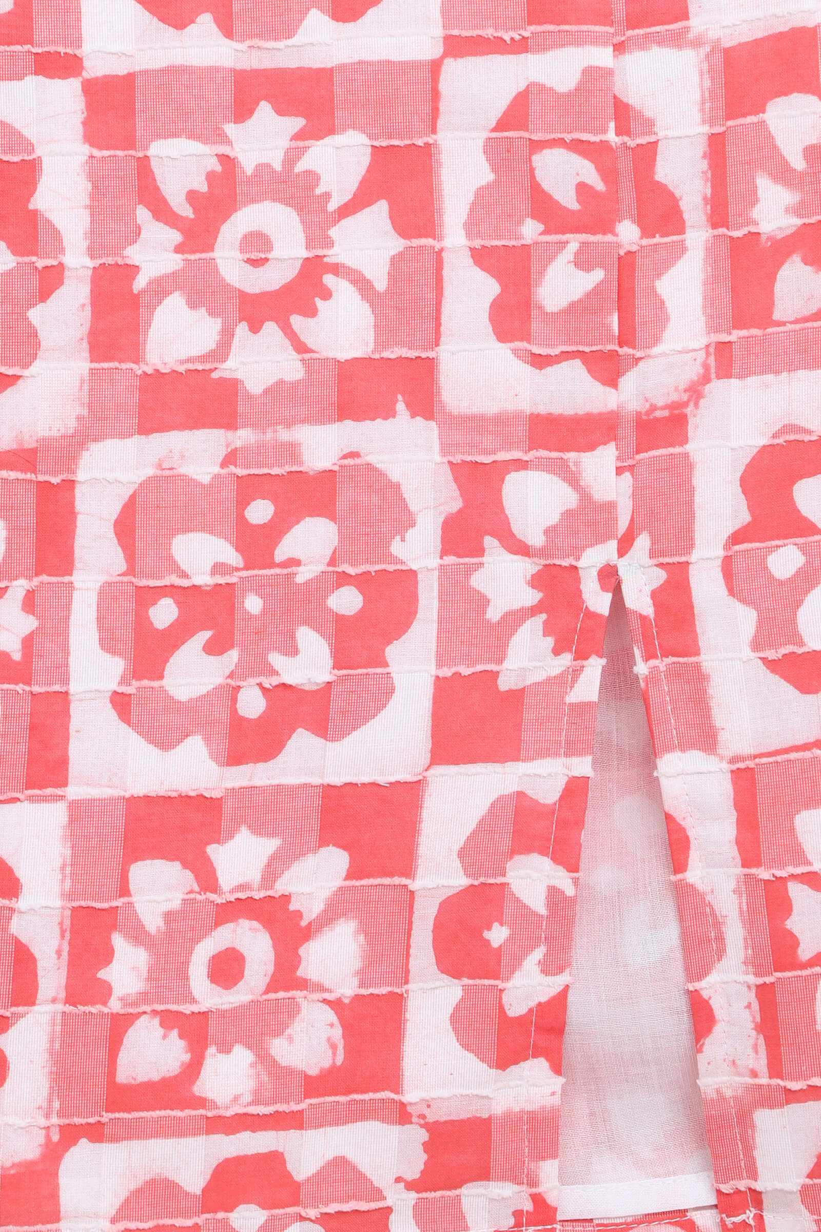 100% cotton woven sleeveless Floral checks printed Halter crop Top and slit skirt set- Red & white