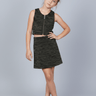 knit sleeveless lurex embellish zip up crop top and matching skirt set-Black & Gold