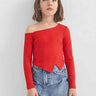 Rib One shoulder Solid Asymmetrical style Top- Red