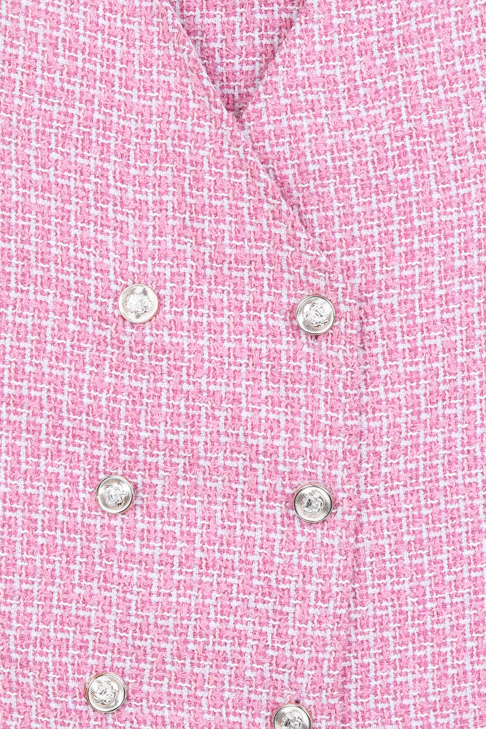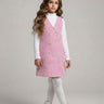 tweed dress with polo neck full sleeve inner top - Pink and White