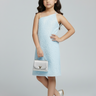 Sequin Embellished Woven Sleeveless One shoulder Party Dress - White and Blue