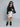 corduroy jacket with inner and abstract printed skirt set - Black / multi