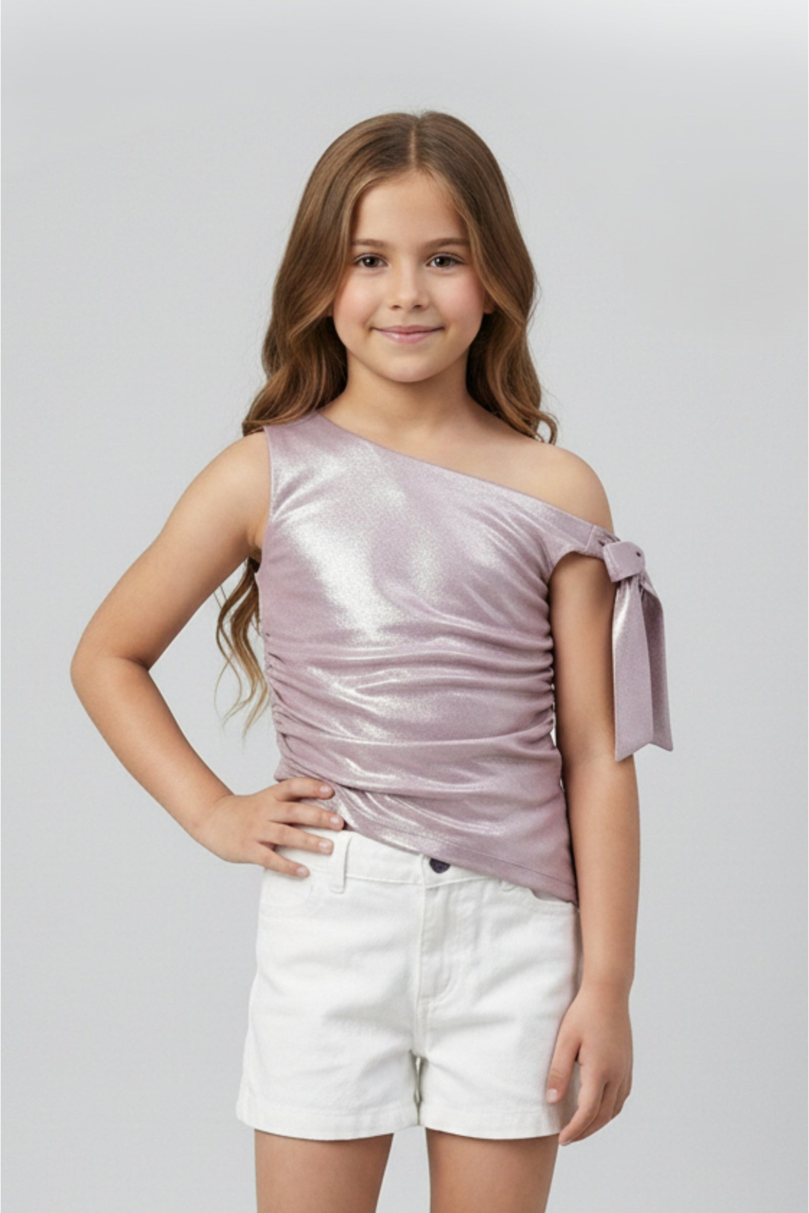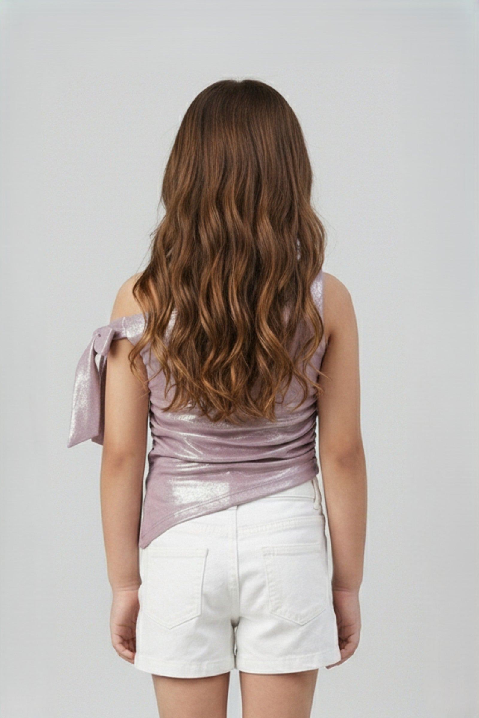 Knit Shimmer One shoulder Tie up detail Asymmetric Top - Purple