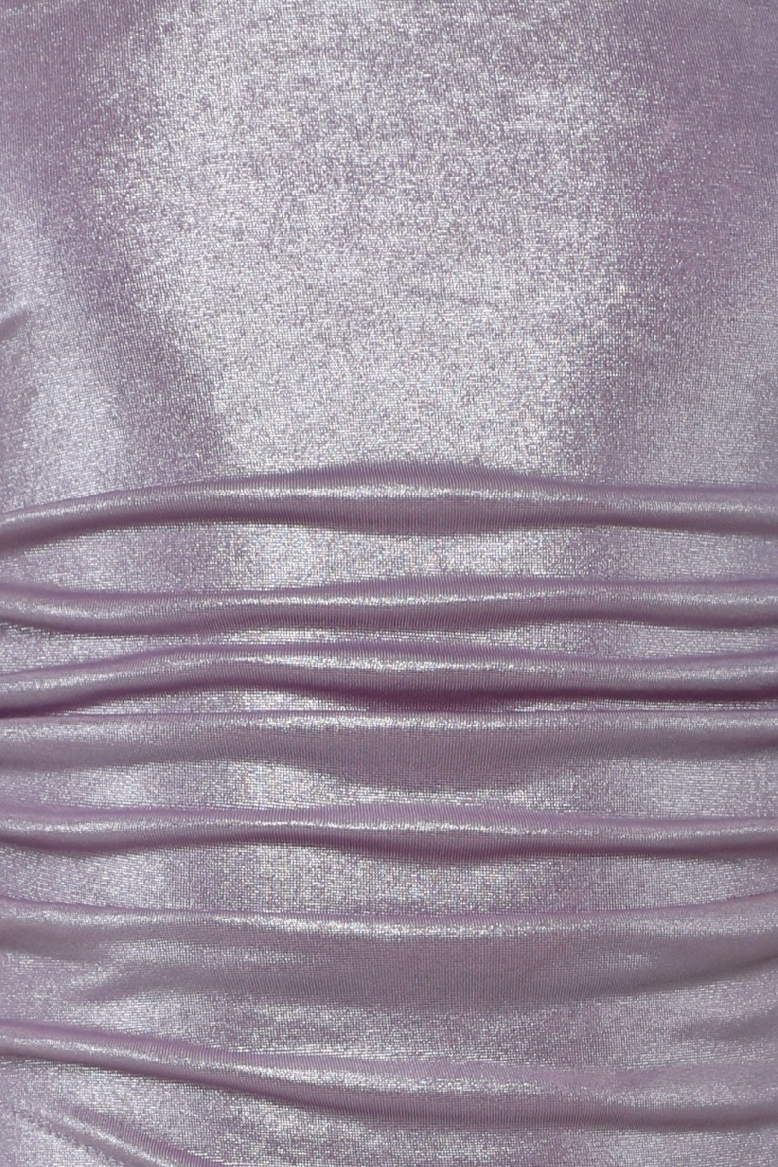 knit shimmer one shoulder asymmetric top with tie up detail in purple, perfect for a stylish party look.