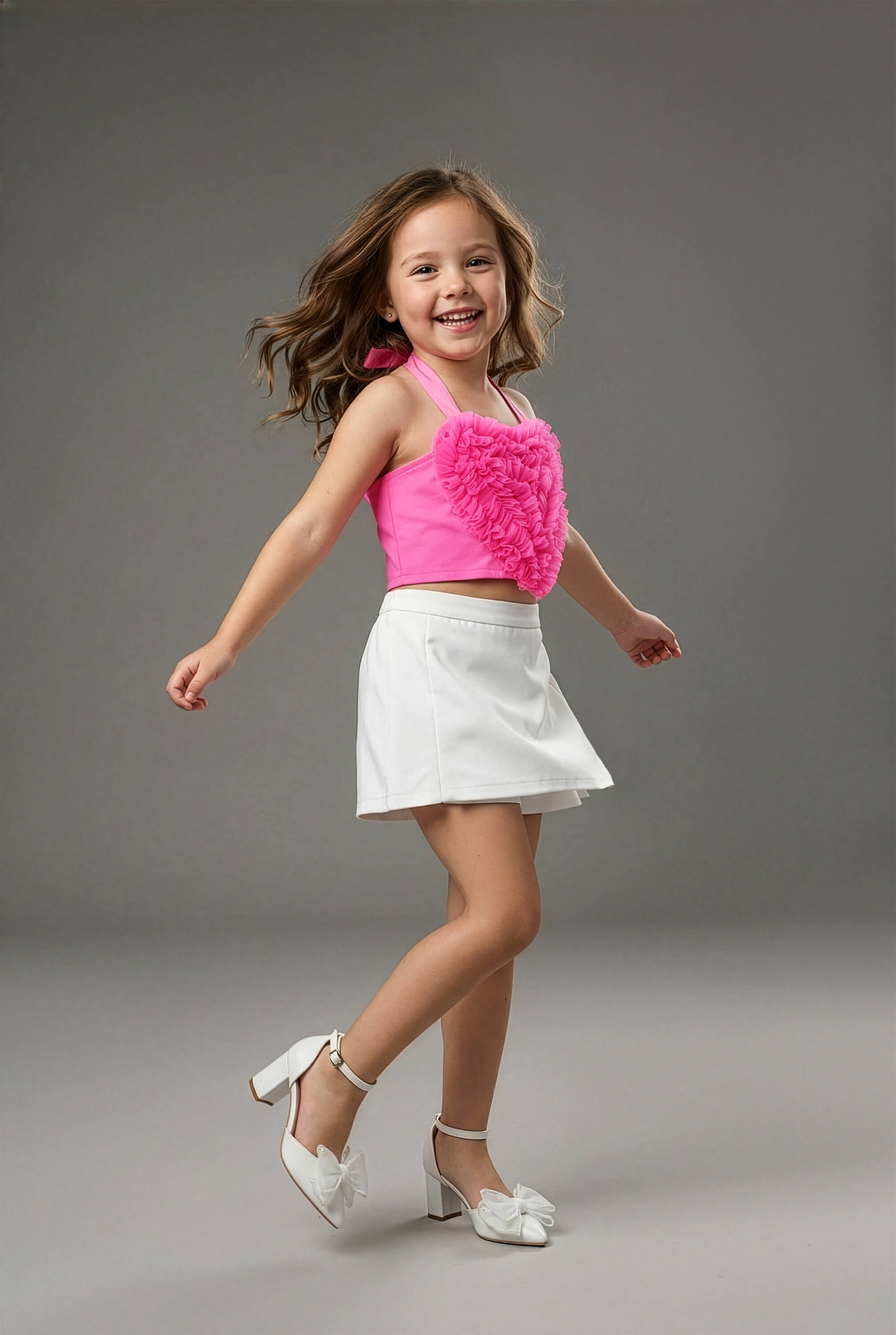 net knit sleeveless heart ruffle applique party crop top-Pink