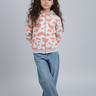 Animal printed full sleeves zip up winter hoodie-Peach/Grey