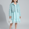 foil printed fur full sleeves collar shrug and singlet tiered dress set-Aquamarine