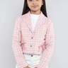 tweed full sleeves slit and bow detail crop blazer-Pink