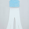 fur knit sleeveless halter crop top and Texture bell bottom pant set- Blue & white