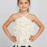 Georgette cascade ruffle detailed halter neck Aline Top With lining