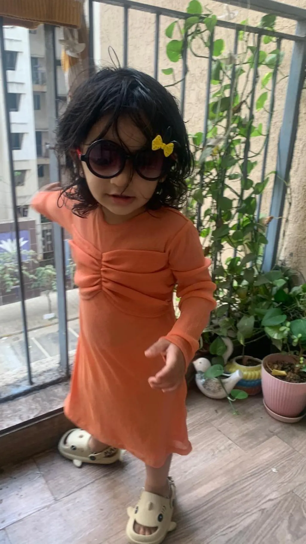 glittered mesh full sleeves front ruched party dress-Orange