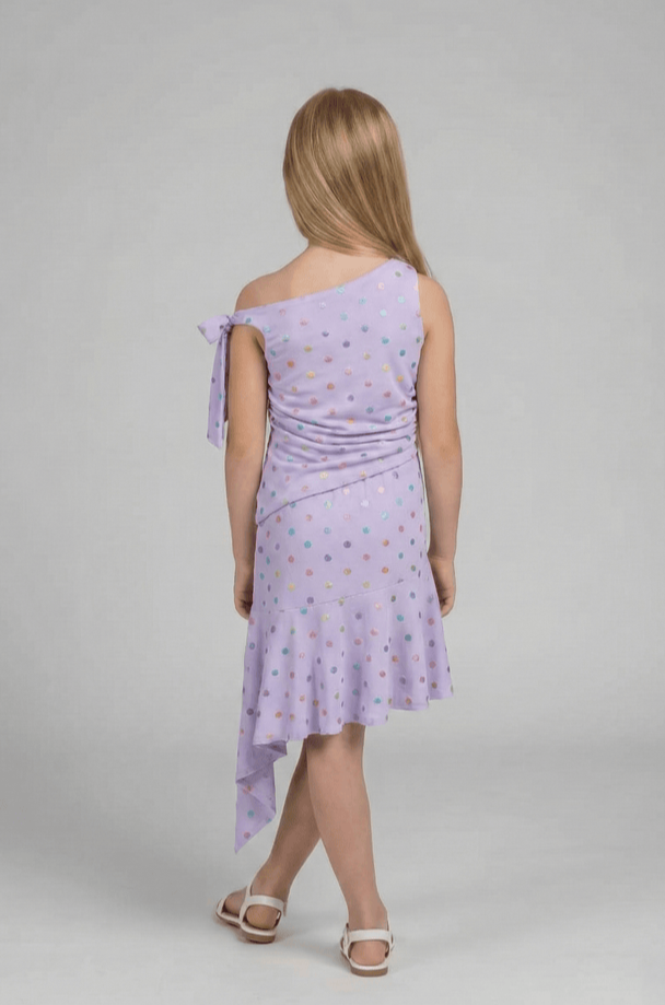 Knit Polka dot One shoulder Tie up detail Top with Matching Asymmetric skirt set - Purple/Multi