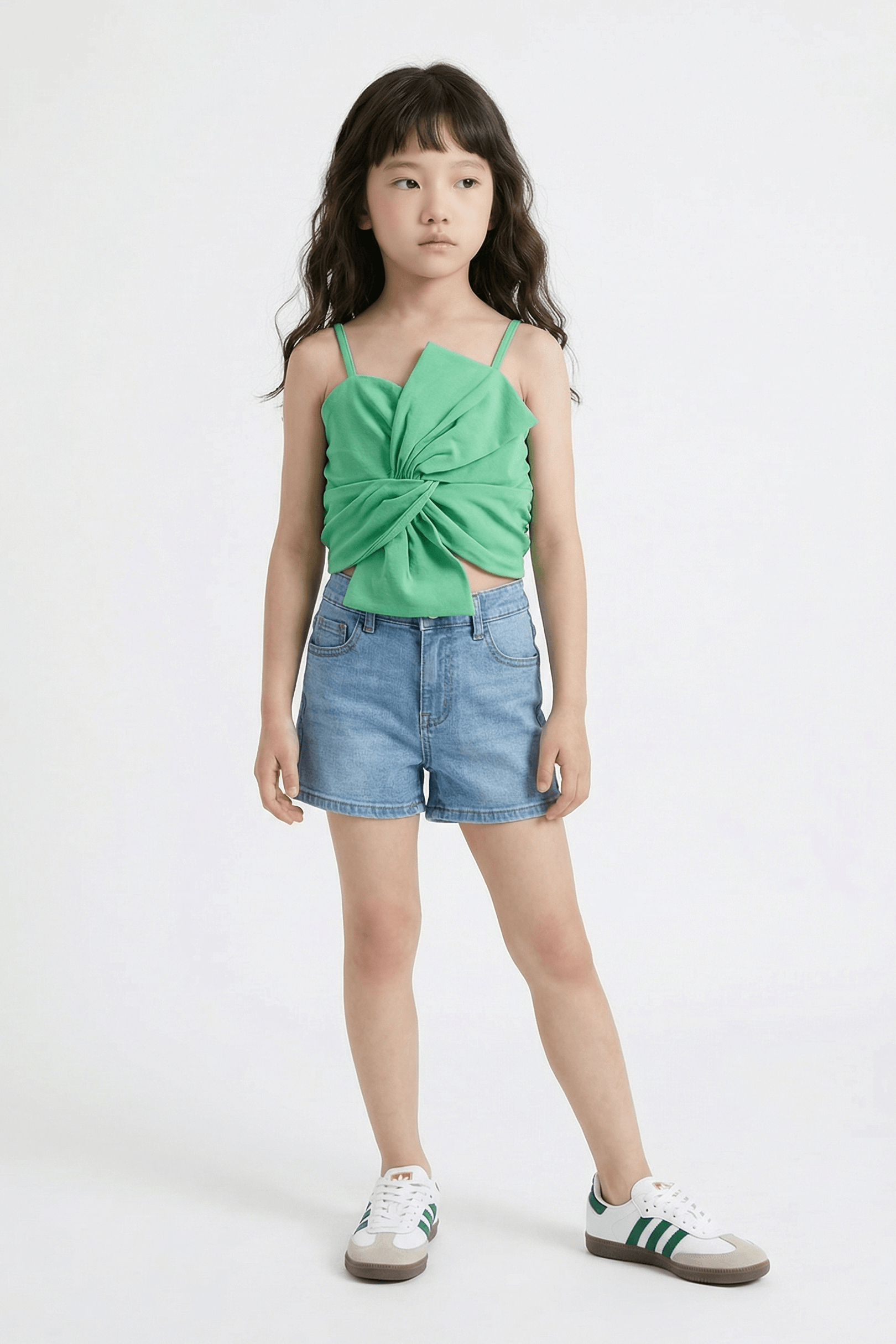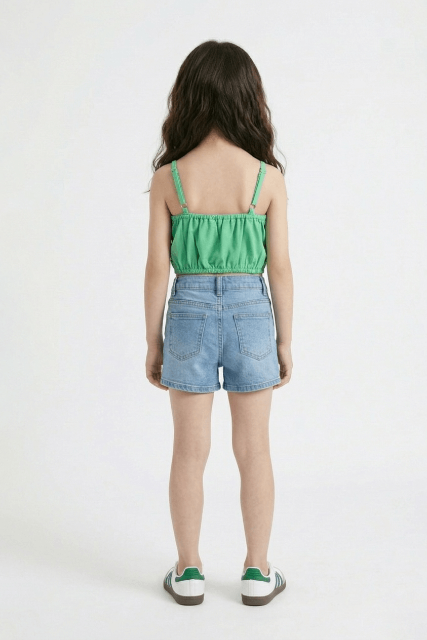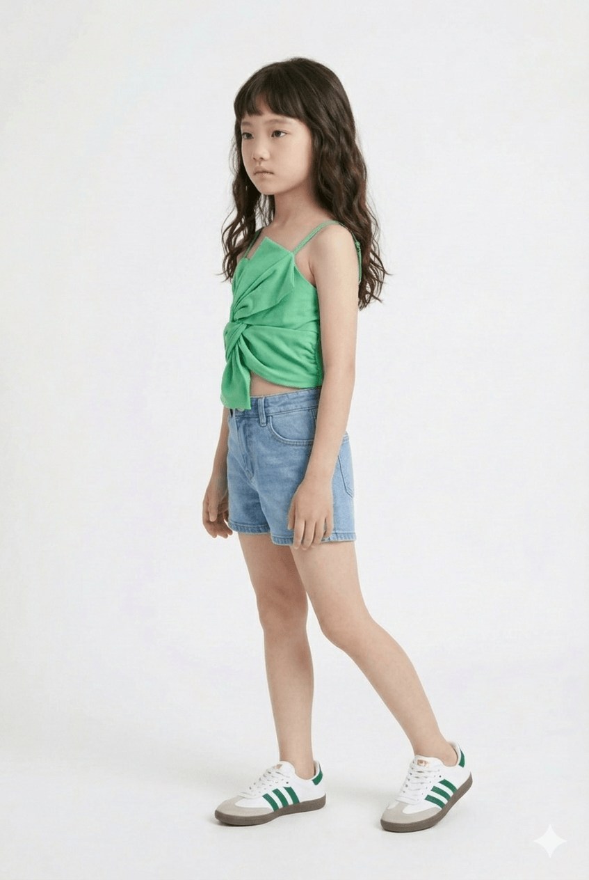 Woven Sleeveless Solid Twist Bow detail Crop Top - Green